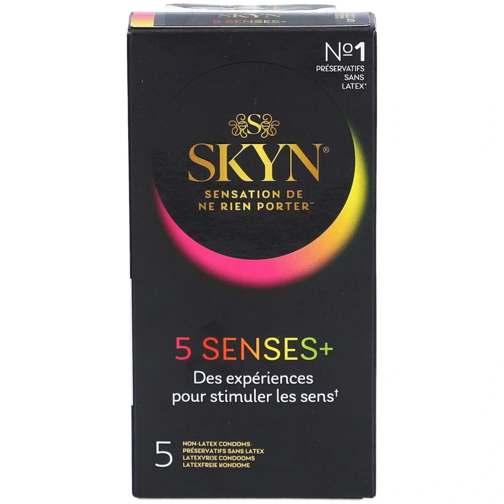 Skyn 5 Sense + включва 5 различни вида нелатексови презервативи.