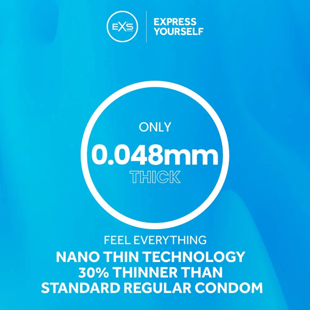 EXS Nano Thin са с номинална ширина от 53 мм, с цилиндрична(стандартна) форма, нямат мирис на латекс и ще Ви накарат напълно да забравите, че носите презерватив!